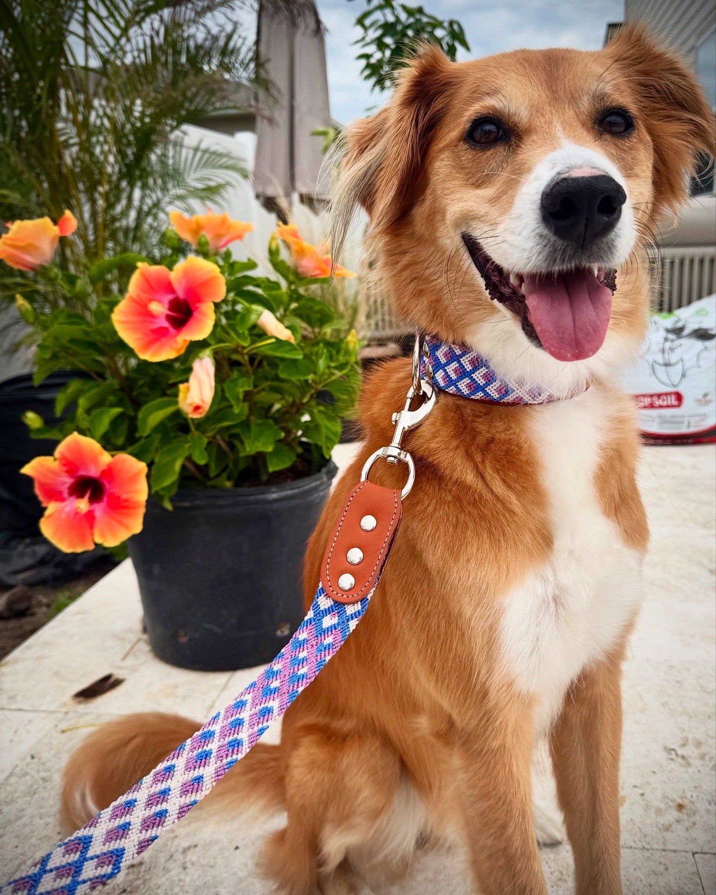 Capturing the spirit of Tamarindo, Costa Rica- a world-renowned destination famous for its surf culture, bohemian lifestyle, and stunning sunsets- our Tamarindo Collar is a beautiful addition for your best friend. The intricate geometric patterns and vibrant blue, purple, and white threads make a perfect blend for this jaw dropping look.